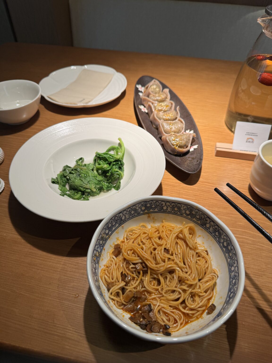 Anschließend bin ich zum essen Gefahren. Das Restaurant war zwar etwas weiter weg, jedoch gehört es auch zu meinen liebsten Restaurantketten. Dort gab es dann für mich Dan-Dan-Nudeln und Dumplings. Außerdem habe ich noch eine kostenlose Beilage bekommen. Dort zu essen hat mich dann doch sehr an meine früheren Reisen erinnert und glücklich gemacht.